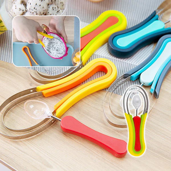 EASY STORAGE AND CLEANING - The compact design of the 3-in-1 Melon Pulp Scoop Set allows for convenient storage in kitchen drawers or cabinets, saving valuable counter space. Each tool is designed with smooth edges and surfaces, facilitating quick and hassle-free cleaning.